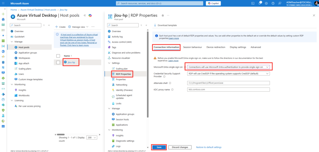 Mais commençons d’abord par tester la mise en place du single sign-on complet pour un environnement AVD de mode hybride, dont les procédures officielles sont disponibles ici et :