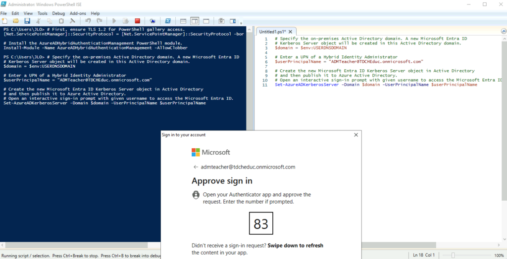 Je lance donc le script à la suite du précédent, en prenant soin de remplacer l’UPN par un administrateur général ou hybride :