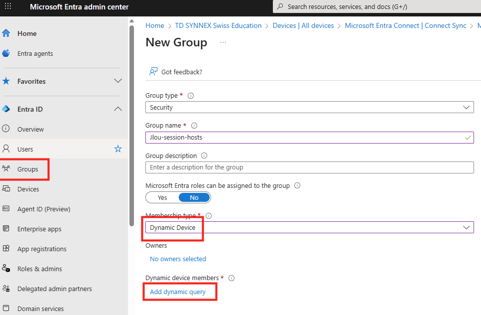 Afin de masquer la boîte de dialogue en configurant la liste des hôtes AVD approuvés, je créé un groupe dans Entra ID contenant les hôtes de sessions :