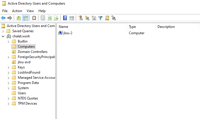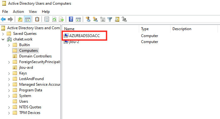 Une fois la configuration terminée, je constate la création de AZUREADSSOACC en tant que compte ordinateur créé dans Active Directory :