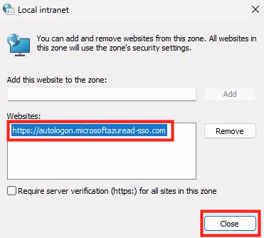 Une fois la session Windows ouverte, comme Seamless SSO fonctionne via l’adresse autologon.microsoftazuread-sso.com, je décide de la rajouter en tant qu’URL de l’Intranet local.