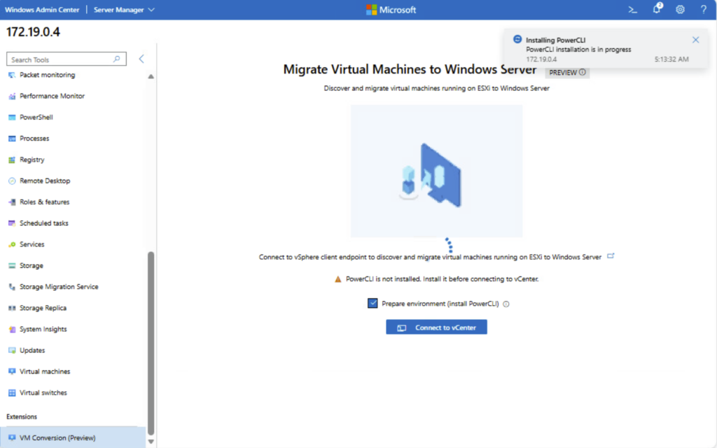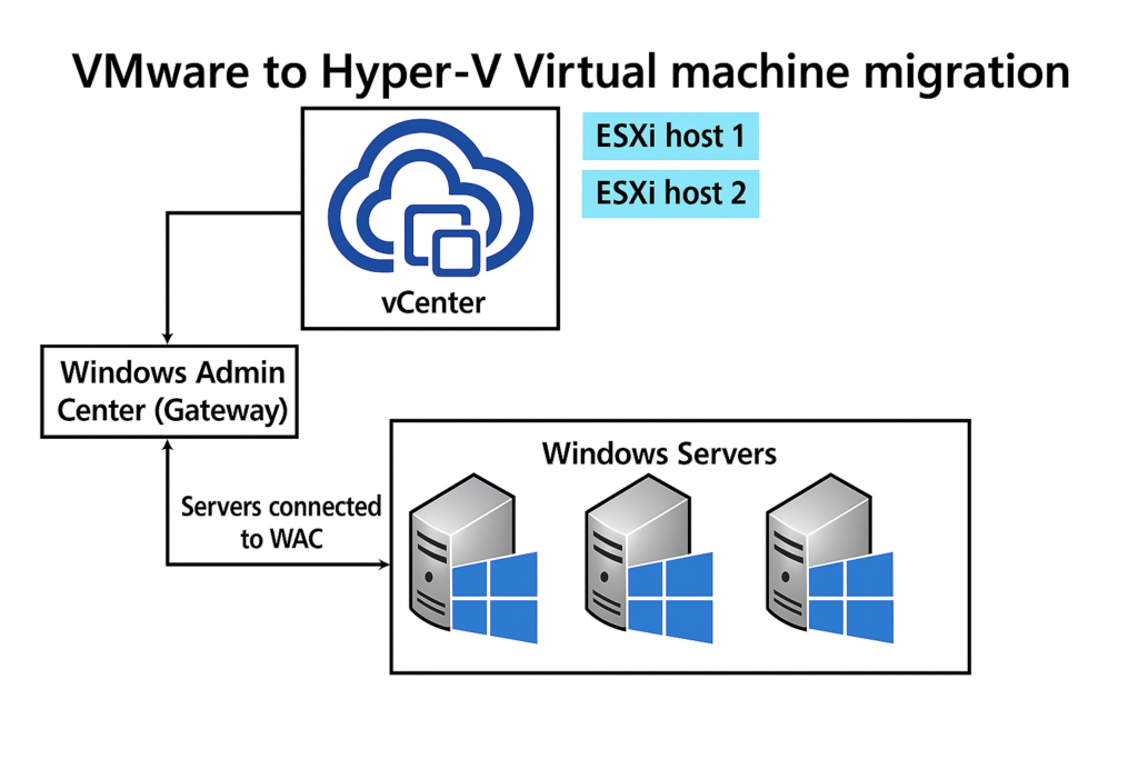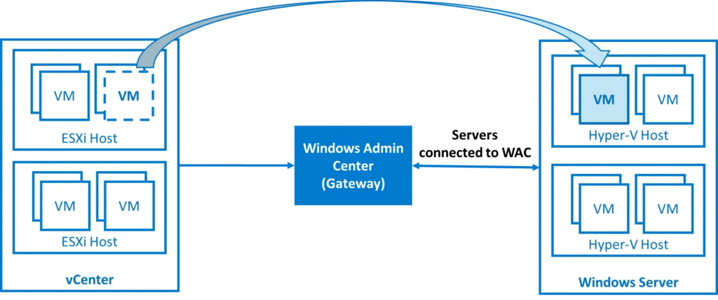 C’est un nouvel outil Microsoft intégré à Windows Admin Center qui permet de migrer des machines virtuelles depuis VMware vCenter/ESXi vers Hyper-V, en mode agentless :