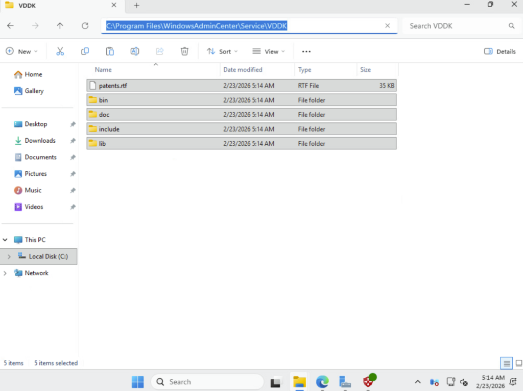 Récupérez et décompressez VMware Virtual Disk Development Kit (VDDK), en version 8.0.3, dans le dossier WAC suivant :