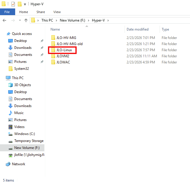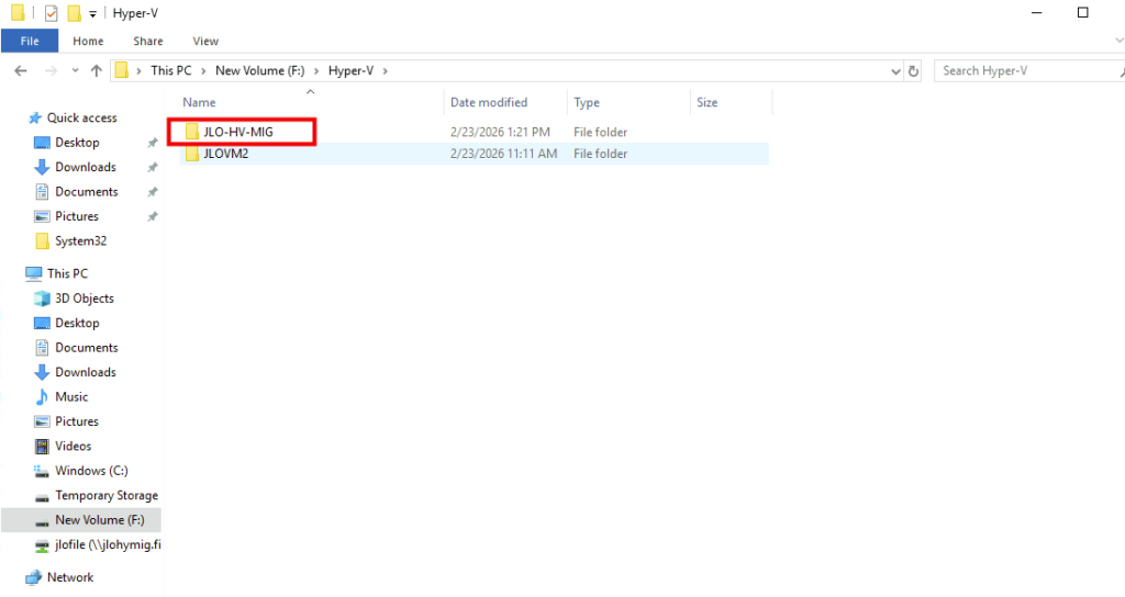 Constatez d’ailleurs la création du dossier sur le serveur Hyper-V :