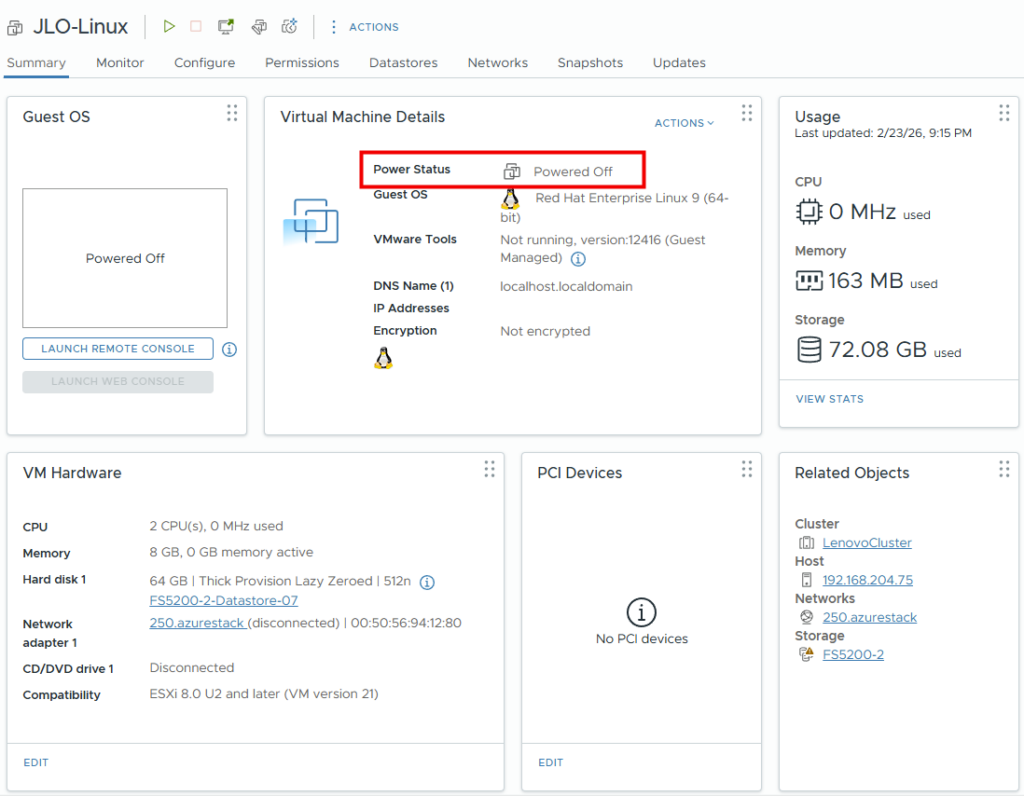 La machine virtuelle est bien arrêtée côté VMware :