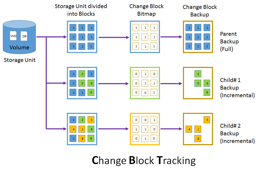 Phase de delta sync : les blocs modifiés identifiés via CBT sont appliqués au disque Hyper-V afin d’aligner la VM cible avec l’état courant de la VM source :