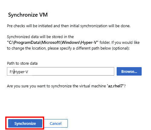 Renseignez le dossier de destination sur votre serveur Hyper-V, puis cliquez sur Synchroniser :