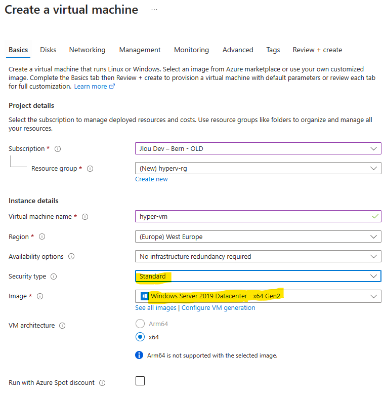 Il est en effet possible dans Azure d’imbriquer de la virtualisation. Cela demande malgré tout quelques exigences, comme le SKU de la machine virtuelle Hyper-V, mais aussi sa génération.