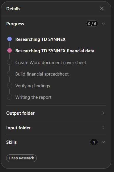 - Skills : 1 compétence active appelée Deep Research