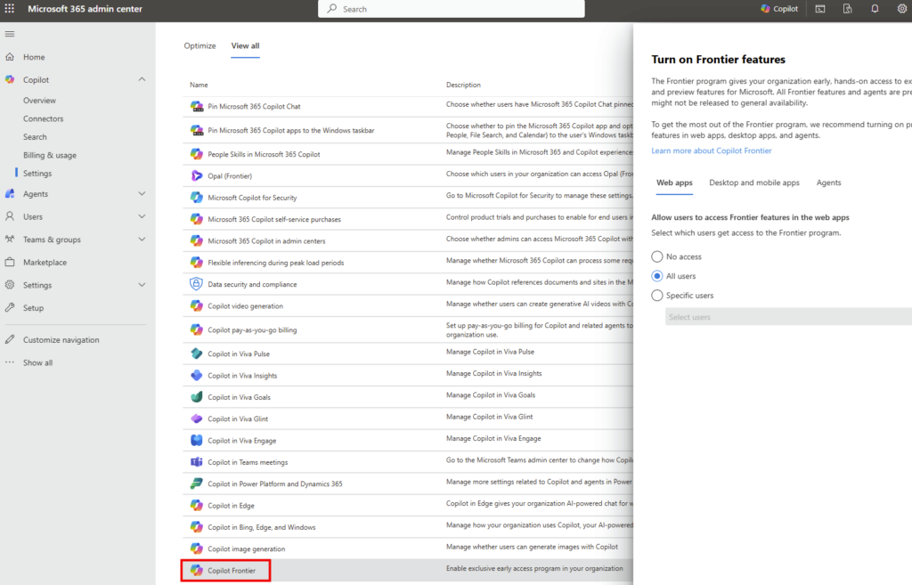 - Programme Frontier : Un espace d’accès en avant-première pour explorer les dernières innovations IA dans Microsoft 365 avant leur disponibilité générale :