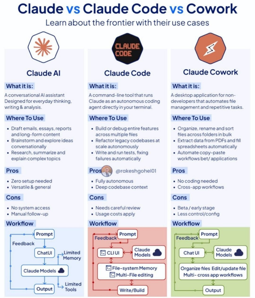 Alors que Claude classique se contente de répondre à vos questions ou de générer du texte dans une fenêtre de chat, Claude Cowork est conçu pour exécuter des tâches complexes de bout en bout, en travaillant directement sur votre ordinateur et dans vos fichiers.