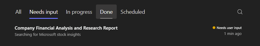 Copilot Cowork vous avertit même, au besoin, via un système de notification quand il a besoin de vous ou quand le travail est terminé :