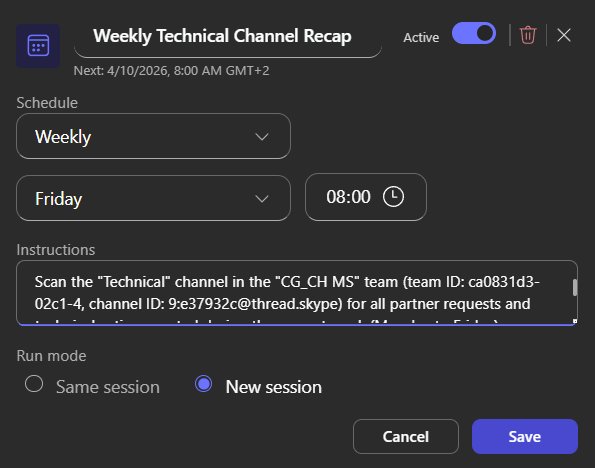 Une fois l’agent Copilot Cowork ajouté, ouvrez-le afin de constater les premières fonctionnalités :