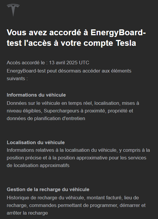Nous sommes maintenant prêt à finaliser l’inscription de notre application chez Tesla.