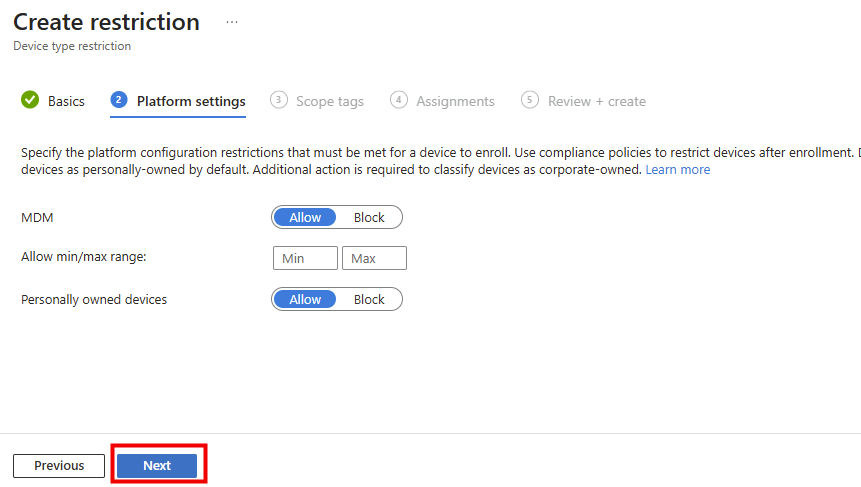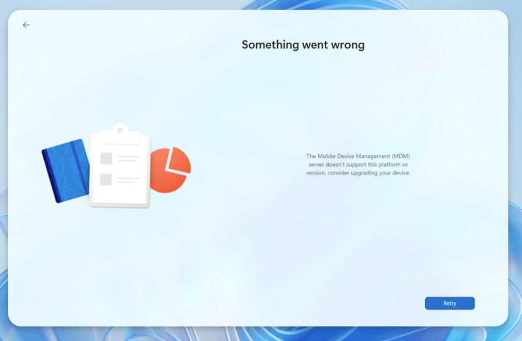 La conséquence directe de ce comportement est simple : l’enrôlement peut se retrouver bloqué si une restriction d’enrôlement Intune bloquant les postes personnelles est mise en place :