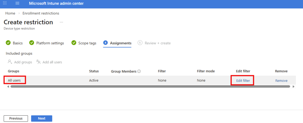 - Etape III – Création d’un filtre d’assignation Intune