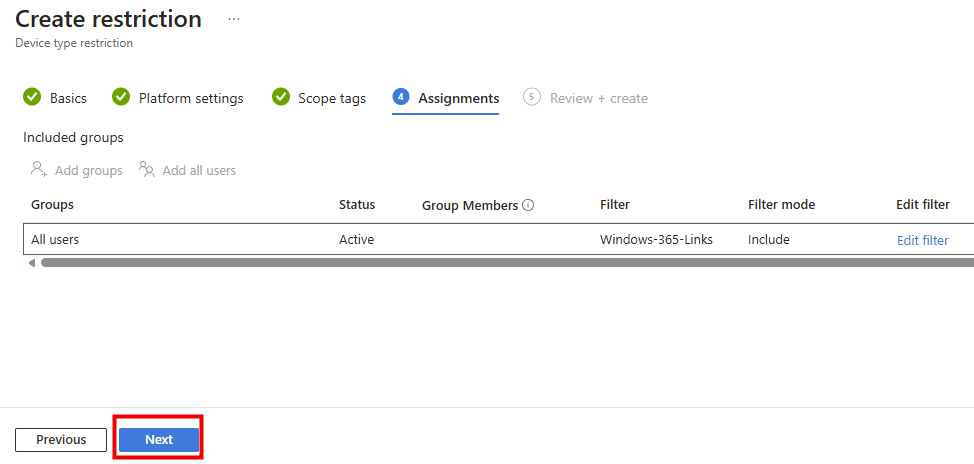 Méthode II – Autoriser Windows 365 Link via un filtre Intune :