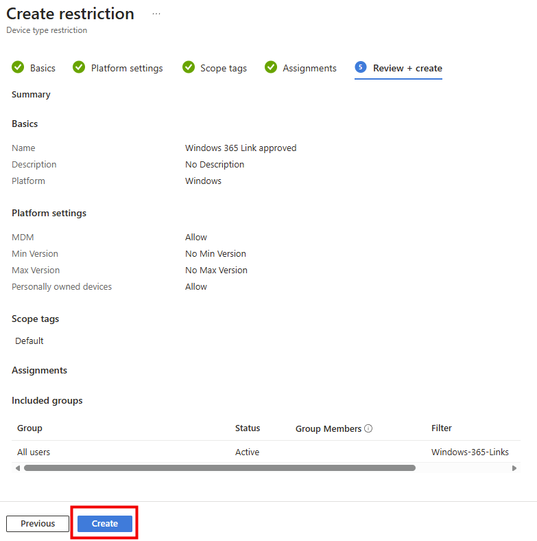 Cette restriction d’enrôlement autorise l’enrôlement des Windows 365 Link, sans remettre en cause les restrictions pour les autres Windows.