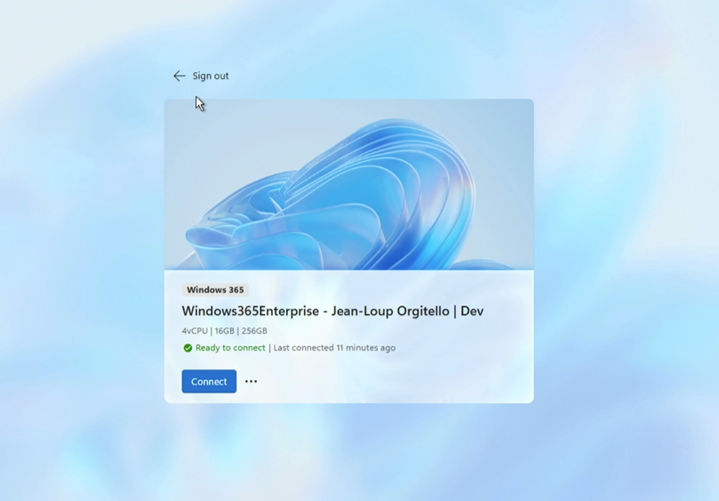 Cette fois, la phase d’enrôlement a pu aller jusqu’au bout, l’utilisateur peut maintenant se connecter à son Cloud PC :