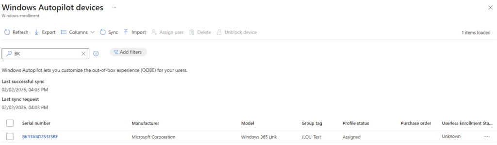 Ainsi le device n’est jamais vu comme Unknown et les politiques bloquantes ne s’appliquent pas. Mais le seul souci reste la gestion et la manipulation de numéros de série des Windows 365 Link.